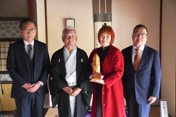 厳正なる選考の結果、永年にわたる顕著な創作活動と功績が高く評価され、陶芸家・沢田一葉氏(写真右から二人目)が「香梅アートアワード」受賞者に選出されました。