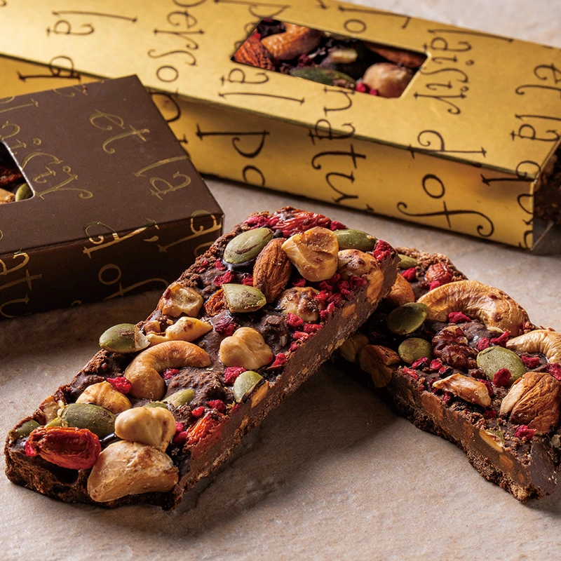 チョコの豊かなコクに、栄養成分や美容効果の高さで注目されている木の実がたっぷり。