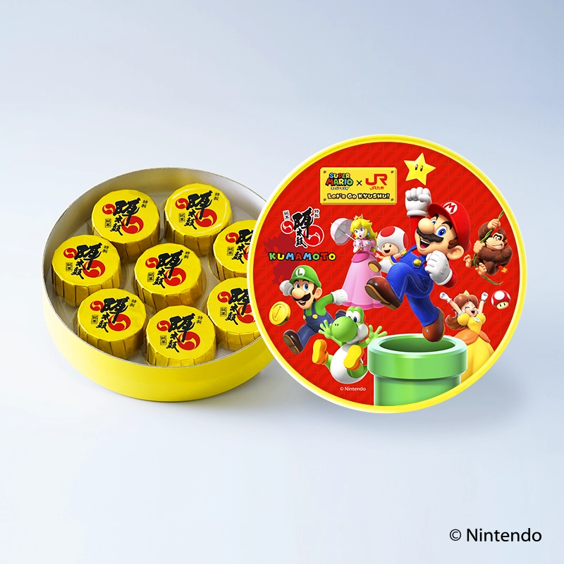 熊本銘菓「誉の陣太鼓」のおいしさはそのままに、お茶席用としてハーフサイズに仕立てた「特製陣太鼓」を8個収めました。熊本のお土産としてはもちろん、スーパーマリオが大好きなお子さまやご友人へのギフトとしても喜ばれております。